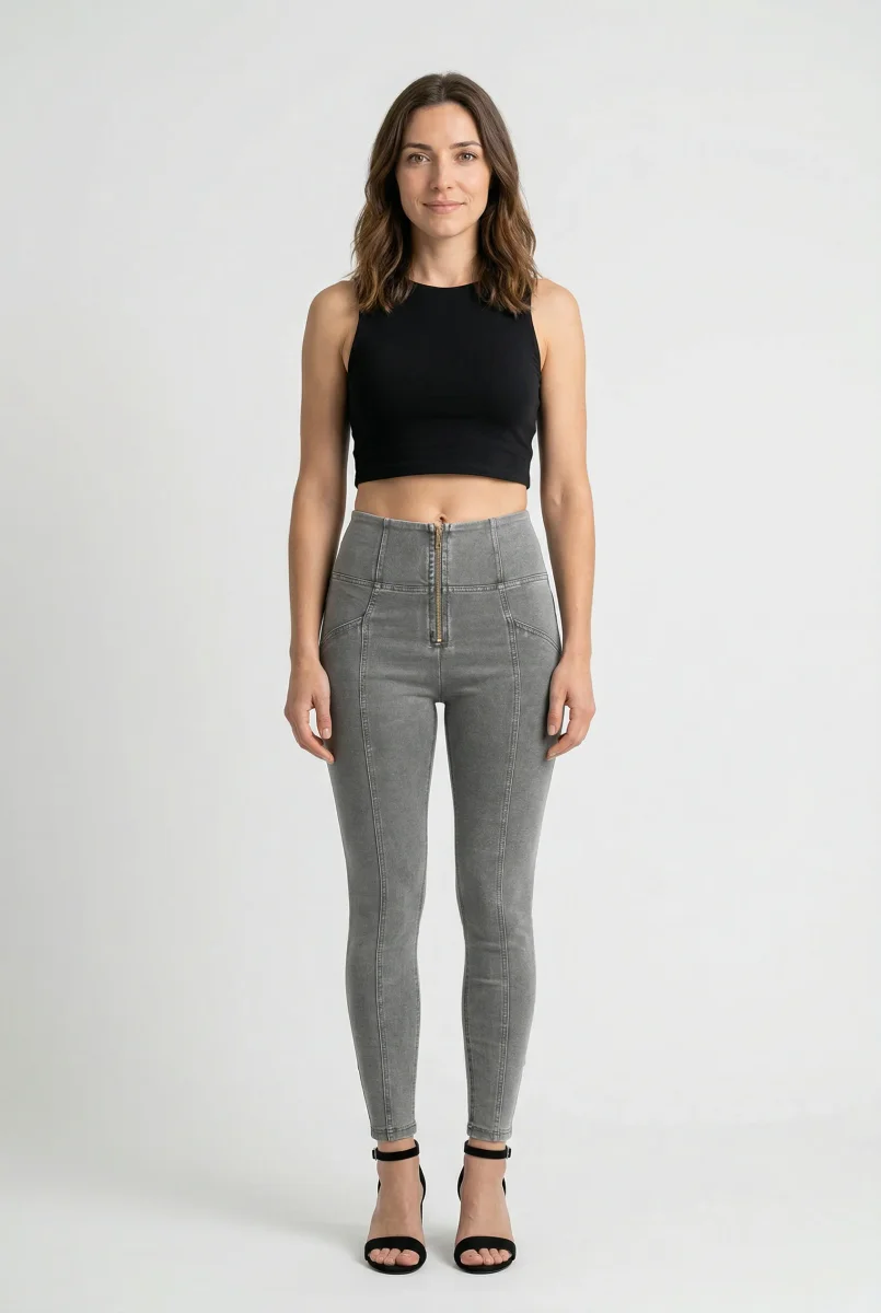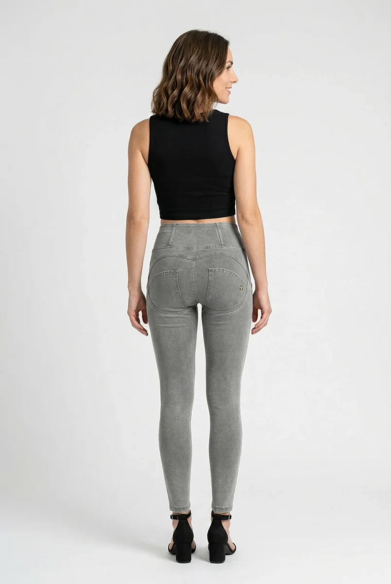 WR.UP® Pants i Grå: designade för att smickra och följa dina rörelser. Upplev Tillverkade erbjuder den klassiska denimlooken med komforten hos ett mjukt, flexibelt tyg. Som en del av WR.UP®-kollektionen har de patenterad teknologi designad för att naturligt framhäva och forma din silhuett. Italiensk design som utstrålar självförtroende och stil.