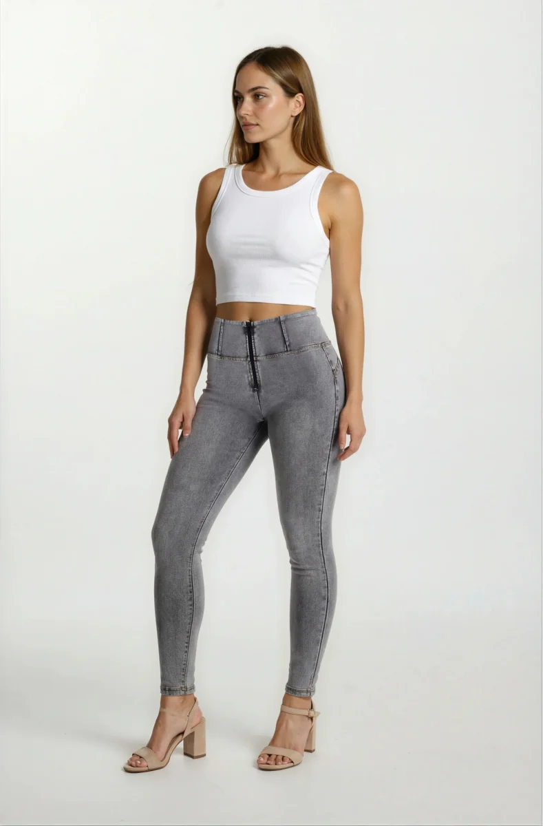 WR.UP® Pants i Grå: designade för att smickra och följa dina rörelser. Detta plagg utmärker sig med med en slank skinny-passform som smiter åt runt dina kurvor. Därtill kommer en tidlös hellängd, perfekt för alla säsonger. Looken avrundas med en smickrande hög midja som ger skönt stöd. Tillverkade erbjuder den klassiska denimlooken med komforten hos ett mjukt, flexibelt tyg. Som en del av WR.UP®-kollektionen har de patenterad teknologi designad för att naturligt framhäva och forma din silhuett. Perfekta för otaliga tillfällen, från avslappnat till uppklätt.