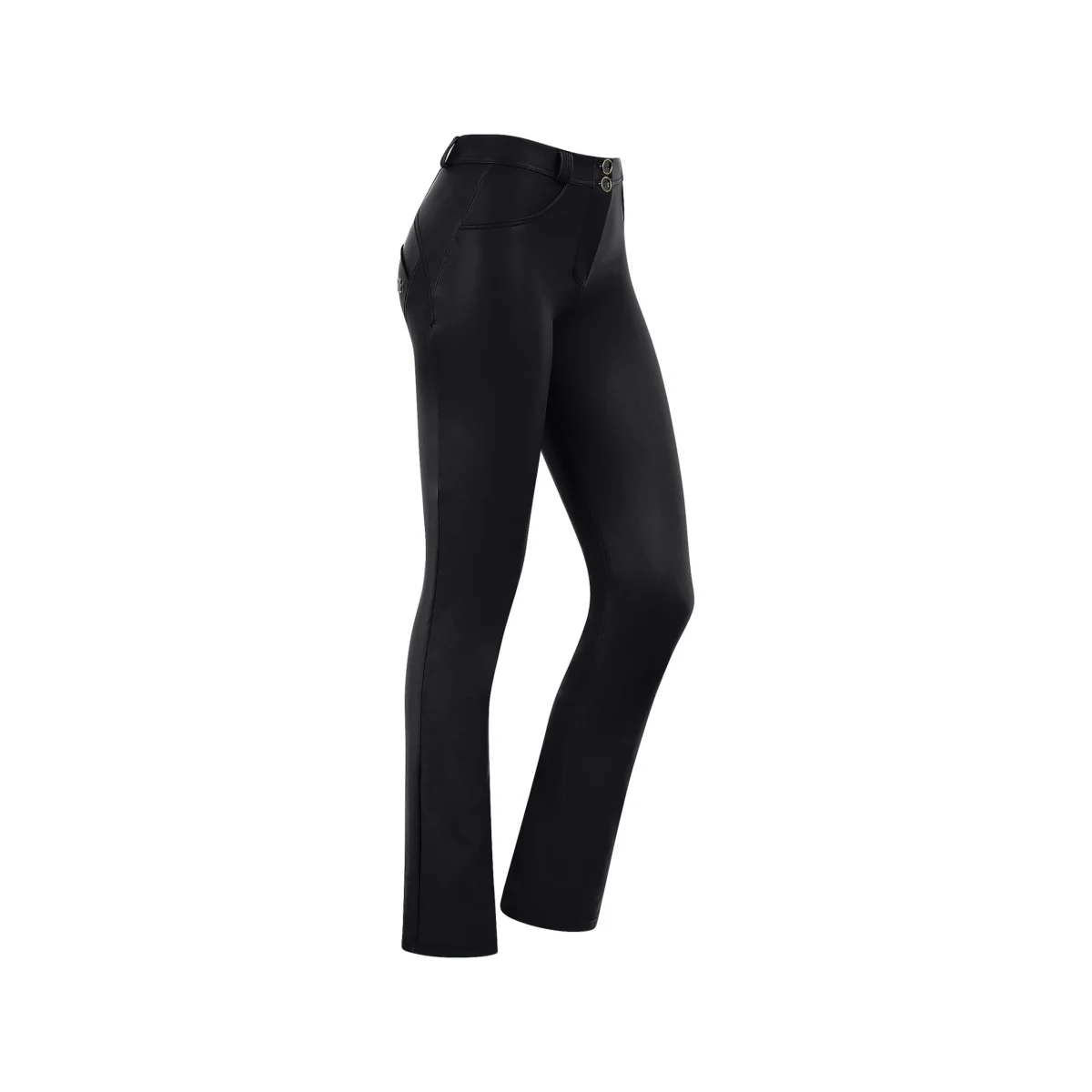 WR.UP® Sport Pants i Svart kombinerar ikonisk Freddy-stil med exceptionell komfort. De har en bekväm medelhög midja för vardagskomfort. Därtill kommer en tidlös hellängd, perfekt för alla säsonger. Looken avrundas med en trendig mini-flare för en subtil retrokänsla. Tillverkade gjorda av ett konstlädermaterial som kombinerar stil och rörelsefrihet och gjorda av innovativt DIWO®-tyg som främjar snabbtorkning, perfekt för träningspass. Som en del av WR.UP®-kollektionen har de patenterad teknologi designad för att naturligt framhäva och forma din silhuett. Ditt förstahandsval för dagar då du bara vill känna dig bekväm.