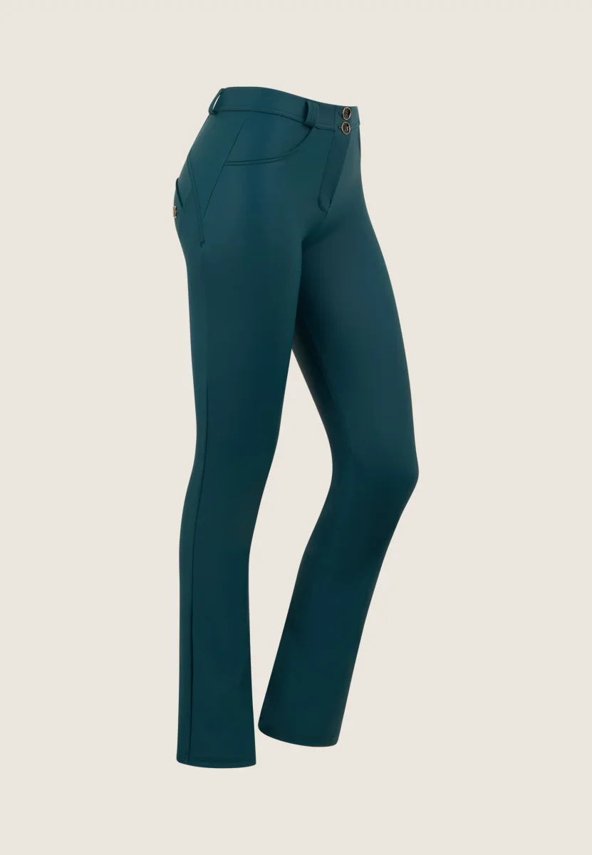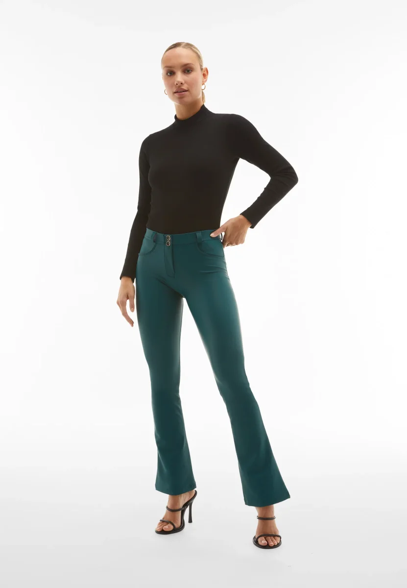 WR.UP® Sport Pants i Grön kombinerar ikonisk Freddy-stil med exceptionell komfort. De kombinerar en tidlös hellängd, perfekt för alla säsonger. Därtill kommer en bekväm medelhög midja för vardagskomfort. Looken avrundas med en trendig mini-flare för en subtil retrokänsla. Tillverkade gjorda av ett konstlädermaterial som kombinerar stil och rörelsefrihet och med Freddys tekniska DIWO®-material för optimal andningsförmåga under alla aktiviteter. Som en del av WR.UP®-kollektionen har de patenterad teknologi designad för att naturligt framhäva och forma din silhuett. Perfekta för otaliga tillfällen, från avslappnat till uppklätt.
