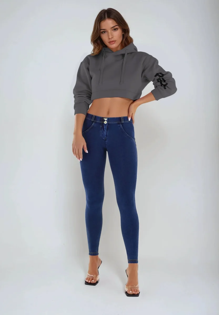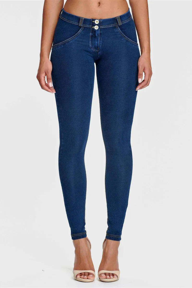 WR.UP® Pants i Blå: designade för att smickra och följa dina rörelser. De kombinerar en tidlös hellängd, perfekt för alla säsonger. Därtill kommer en slank skinny-passform som smiter åt runt dina kurvor. Looken avrundas med en bekväm medelhög midja för vardagskomfort. Tillverkade erbjuder den klassiska denimlooken med komforten hos ett mjukt, flexibelt tyg. Som en del av WR.UP®-kollektionen har de patenterad teknologi designad för att naturligt framhäva och forma din silhuett. Byxor som enkelt kombinerar komfort och ett modernt utseende.