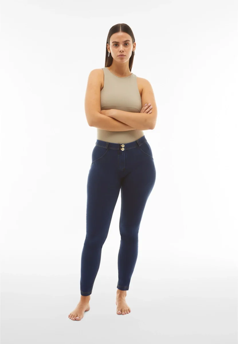 WR.UP® Pants i Blå kombinerar ikonisk Freddy-stil med exceptionell komfort. De har en slank skinny-passform som smiter åt runt dina kurvor och en tidlös hellängd, perfekt för alla säsonger. Looken avrundas med en bekväm medelhög midja för vardagskomfort. Tillverkade med otroligt mjuk och slät Tencel™ Lyocell för en lyxig känsla. Som en del av WR.UP®-kollektionen har de patenterad teknologi designad för att naturligt framhäva och forma din silhuett. Italiensk design som utstrålar självförtroende och stil.